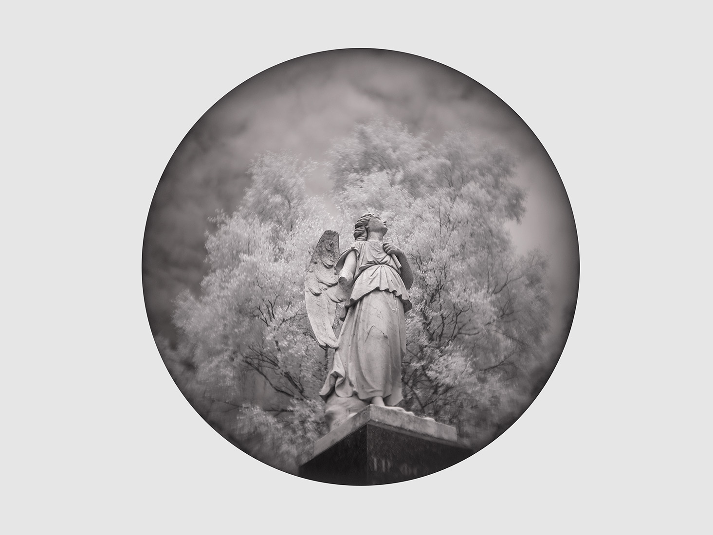 This photo is one of many I’ve taken at the various cemeteries in Dunedin – the old stone monuments and leafy settings work well in infrared, and they suit the timeless feel that I’ve been aiming for with this project – circular images don’t necessarily fit in with the usual compositional approach of a rectangle, and that has been very interesting and liberating challenge. I’m going to keep on with the circles and squares until I figure it out.